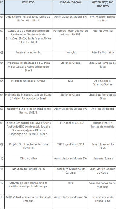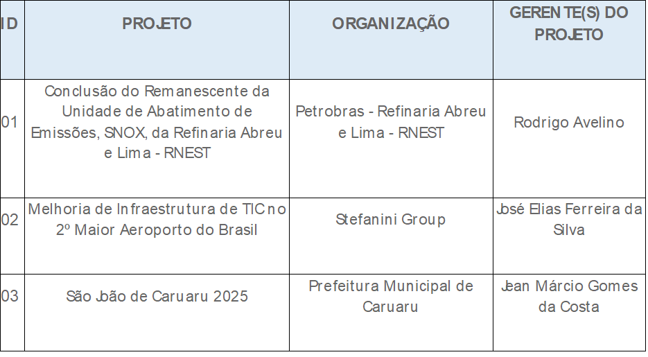Relação dos Finalistas do Prêmio PMI-PE 2025